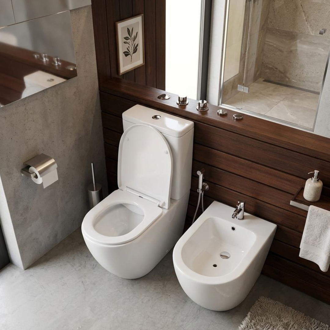 En cambio los bidet con transferencia tienen dos salidas de agua y una perilla o sistema para elegir cuál usar.