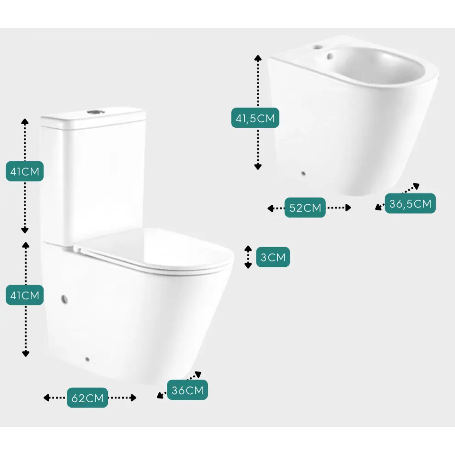 Inodoro, deposito, tapa cierre suave y bidet de 1 agujero (sin transferencia) fabricados en porcelana sanitaria cubierta con nano esmalte.