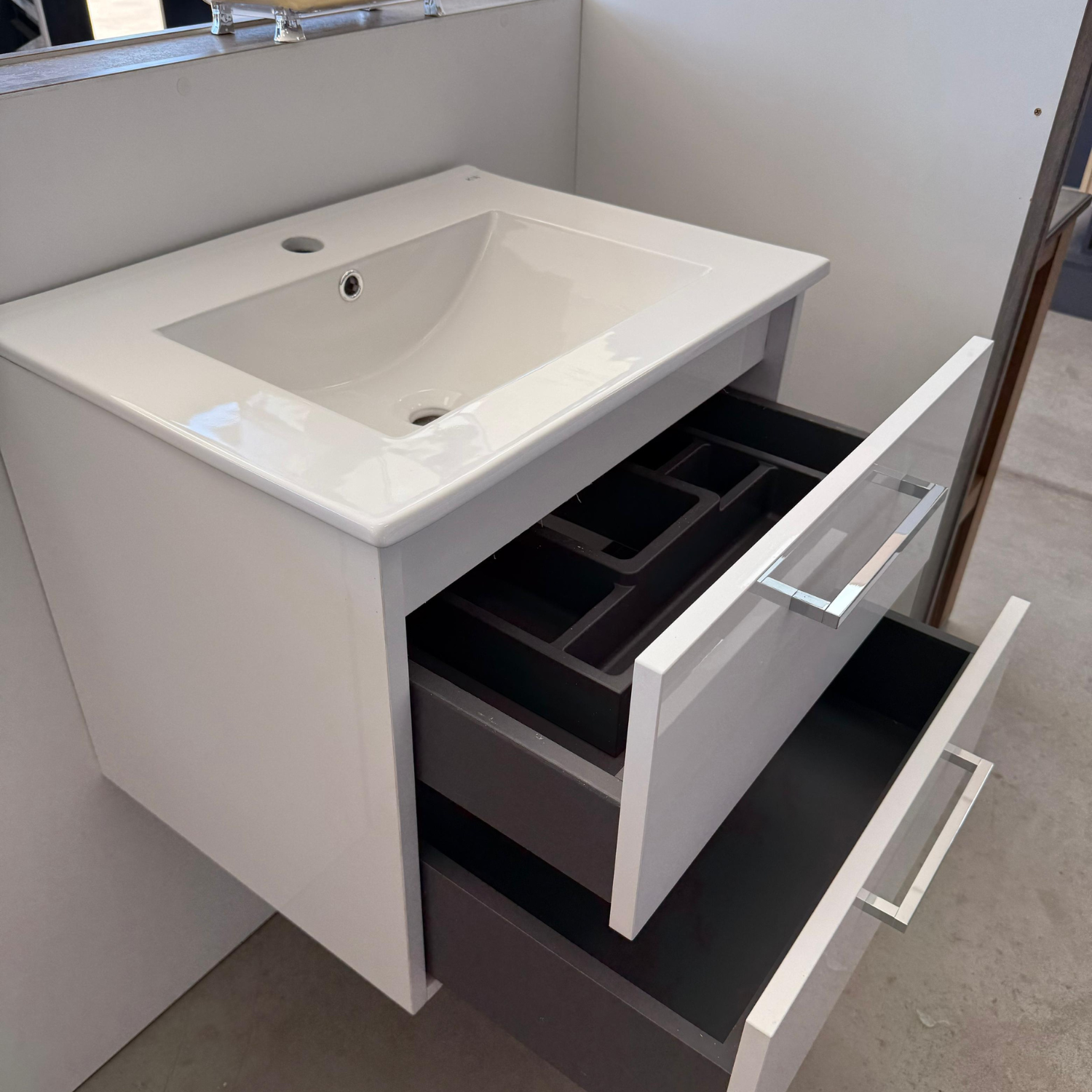 vanitory blanco de colgar 60 cm bossa campi con mesada de loza