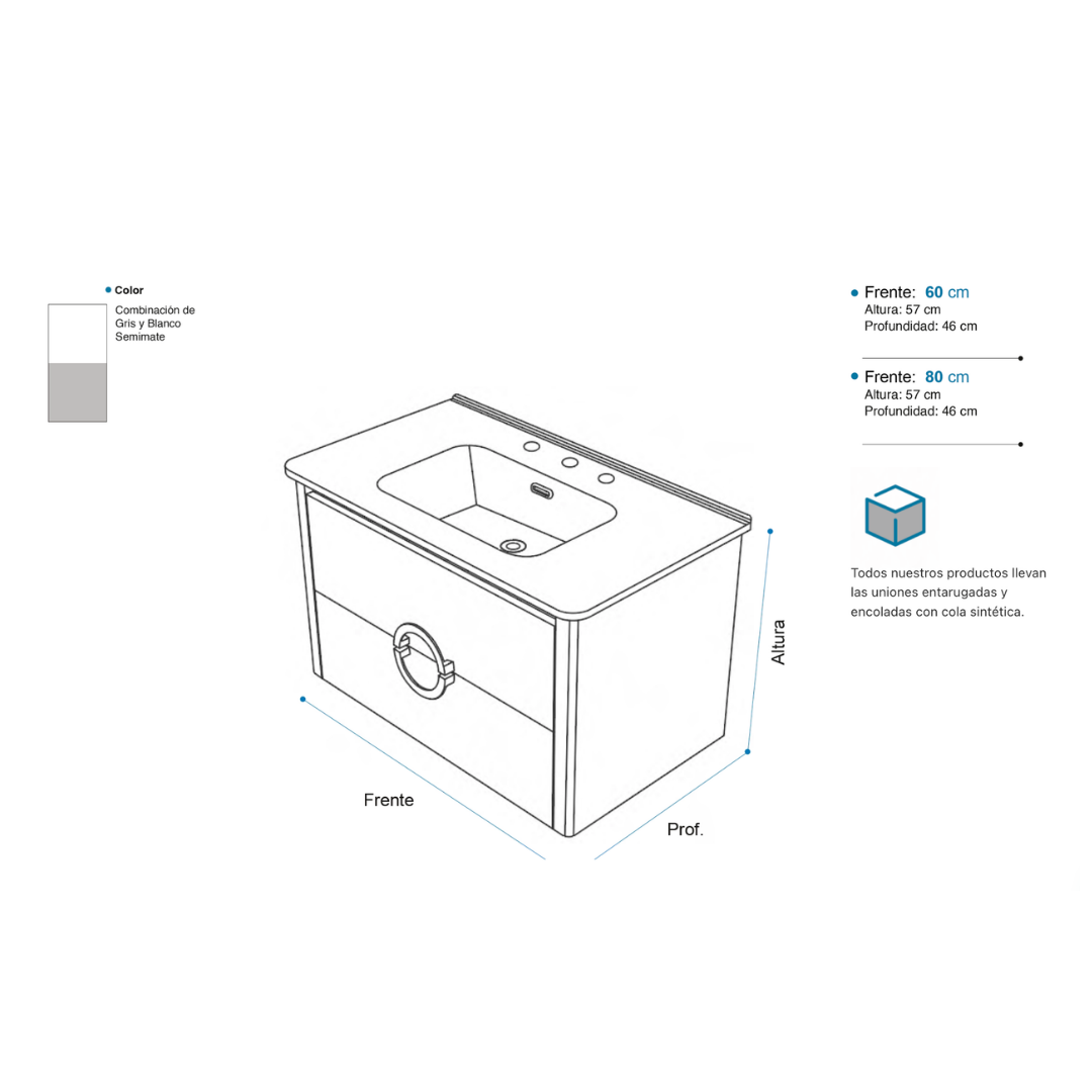 Vanitory circle 60 x 46 cm con mesada de loza Campi