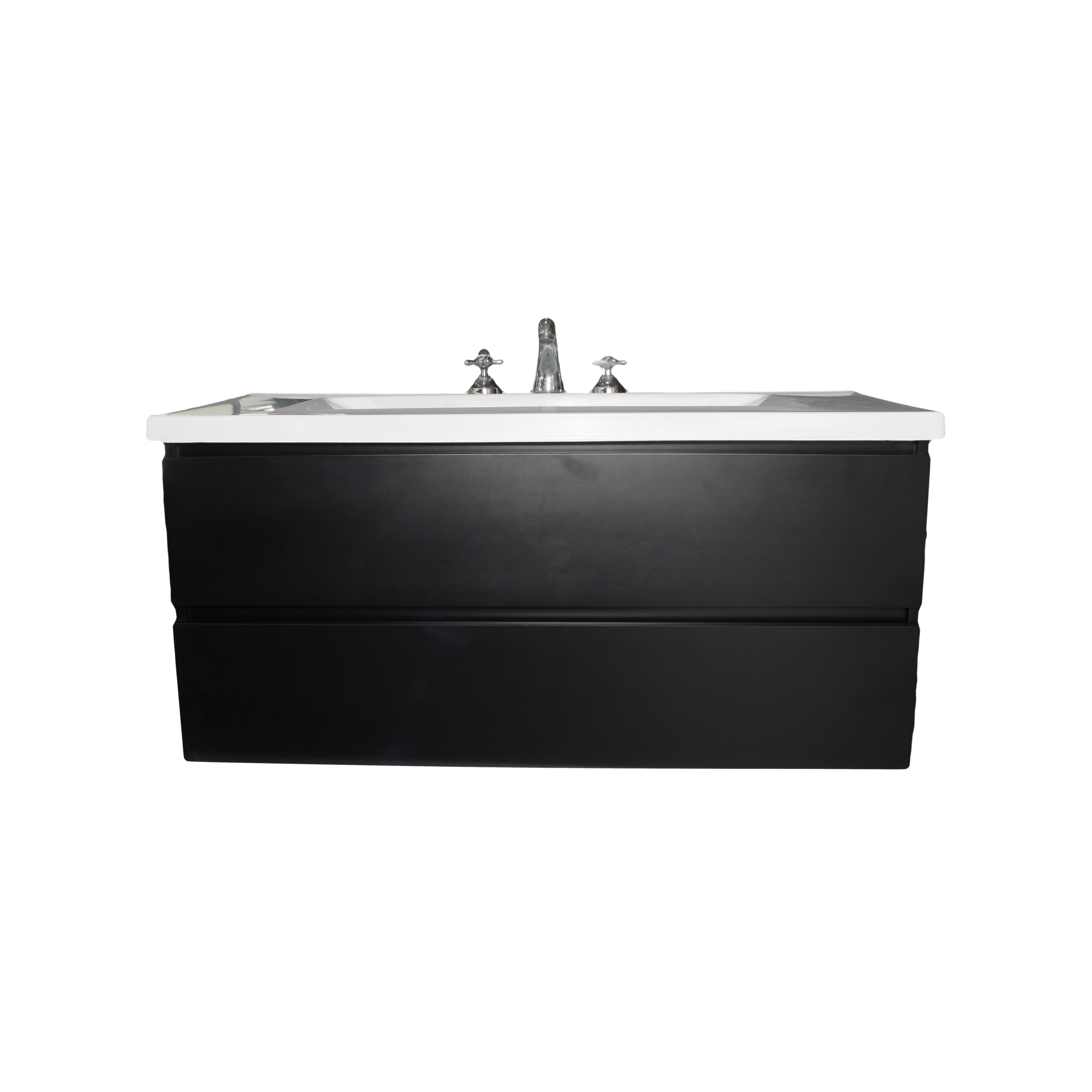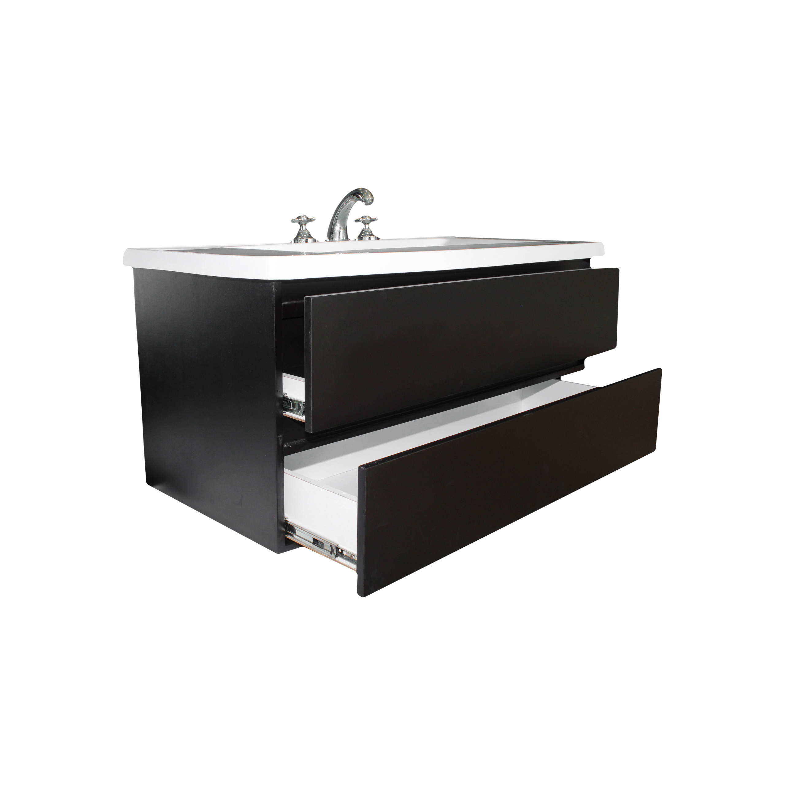 Vanitory de colgar wengue laqueado 100×46 cm 2 cajones con mesada marmolina 1 o 3 agujeros